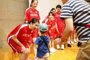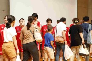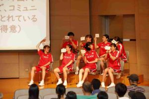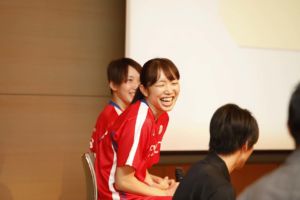 台風の影響が心配されましたが、当日は全国からたくさんの方々にご来場頂き、トークショーを行いました。そして当日、代表合宿のため不参加の予定だった、髙田真希選手と赤穂ひまわり選手がイベント終了10分前に到着!サプライズ登場でファンの方々を驚かせた一幕も。