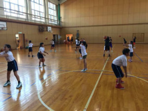 今回のクリニックは平成小学校の部活動の子供たちと、これからバスケットを始めようとしている3年生の子供たちが集まってくれました。ボールに触れることをゲーム感覚で楽しく行いましたが、体育館の中が熱すぎてみんなのことが心配でした。でもみんな集中して楽しそうに最後まで頑張ってくれたことが何よりも良かったです。まだシュートが届かなかったり、入らなかったりすることもありましたが、練習していけば必ず入る様になるので、今日伝えたようにリングのポイントに狙いを定めてシュートしてみてください。これからまだまだ暑い日が続きますが、暑さに負けない体づくりも大切なことなのでみんなで楽しみながらも体を動かしてみてほしいです。今日はたくさんの子が参加してくださりありがとうございました。 |
