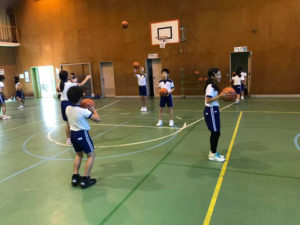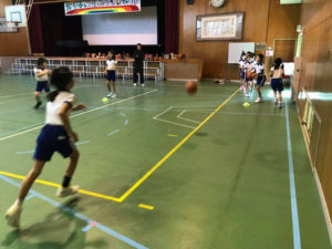 | ④ハンドリング | ボールストレッチ、ボール回し、8の字、片足ボール回し 背面キャッチ、ボールバランス、肩ごしスナップ 動きながらボール回し(スキップ、サイドスキップ、ジャンプ) 股下持ち替え |