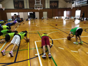 |  | 今回は、男子Bリーグ千葉ジェッツや、女子JX-ENEOSが拠点の千葉でクリニックを行いました。体育館には両チームの選手のサインがあり、子どもたちの服装を見ても一目でバスケットが盛んであることが良く伝わってきました。 練習で気になったことは、まず柔軟性がなく体が硬すぎる事です。バスケットには直接関係しないように感じるかもしれませんが、怪我をしないためにもストレッチは必ず行ってください。シュートに関しては後半レクチャーした後、アーチなどシュートの入り方が短時間で上達した子もいたので、継続して意識しながら練習してみてください。みんなを見ているとバスケットが本当に好きなんだなと感じたので、その気持ちずっと持ち続けて今後の練習も頑張って下さい。ありがとうございました。 |